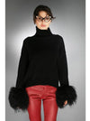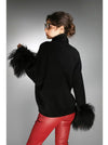 Black Cashmere Sweater with Mongolian Shearling Cuffs