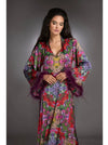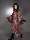 Red Floral High Low Gown Bell Sleeves Ostrich Feathers