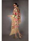 St- Pink Abstract Fringed Satin Long Kaftan Dress